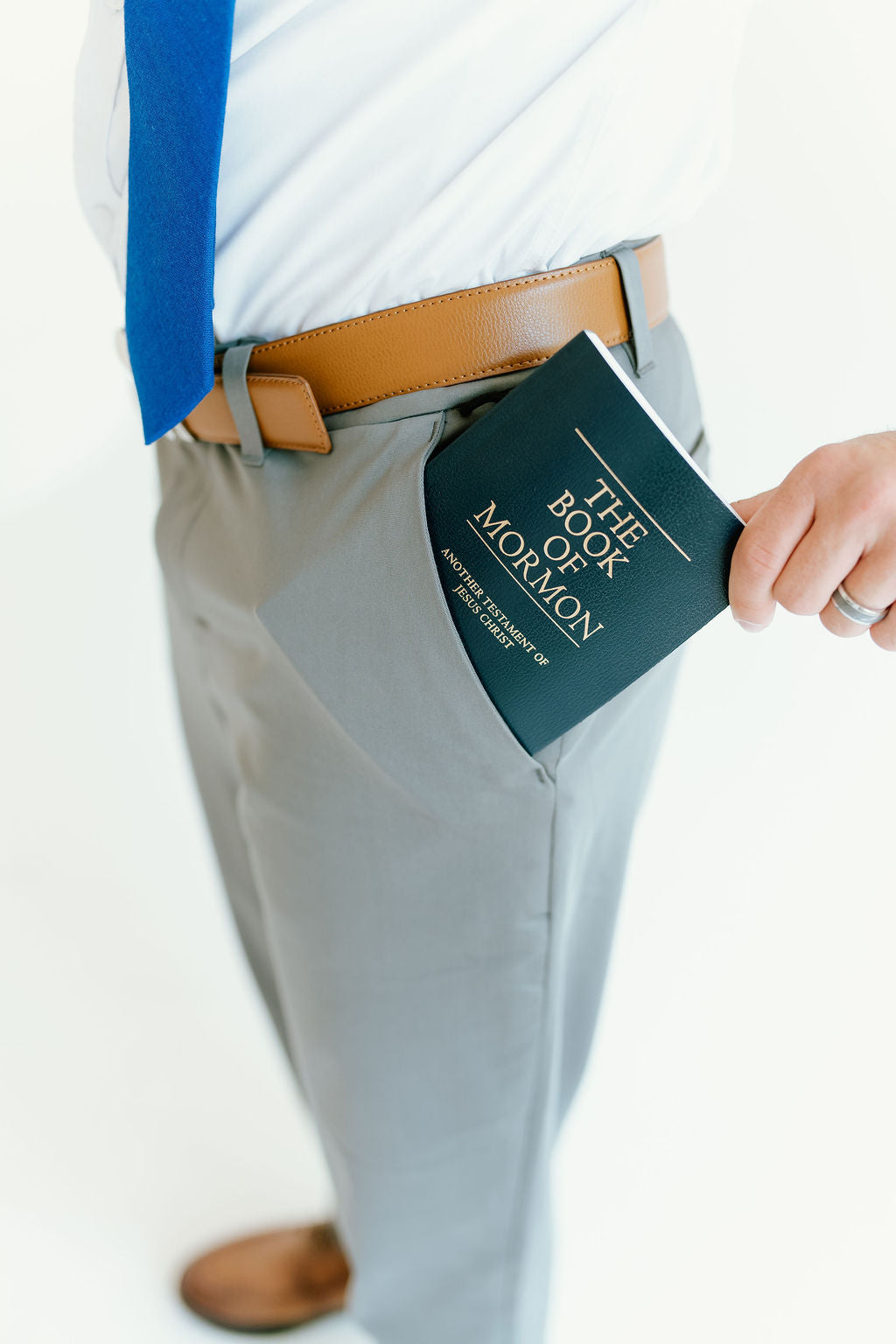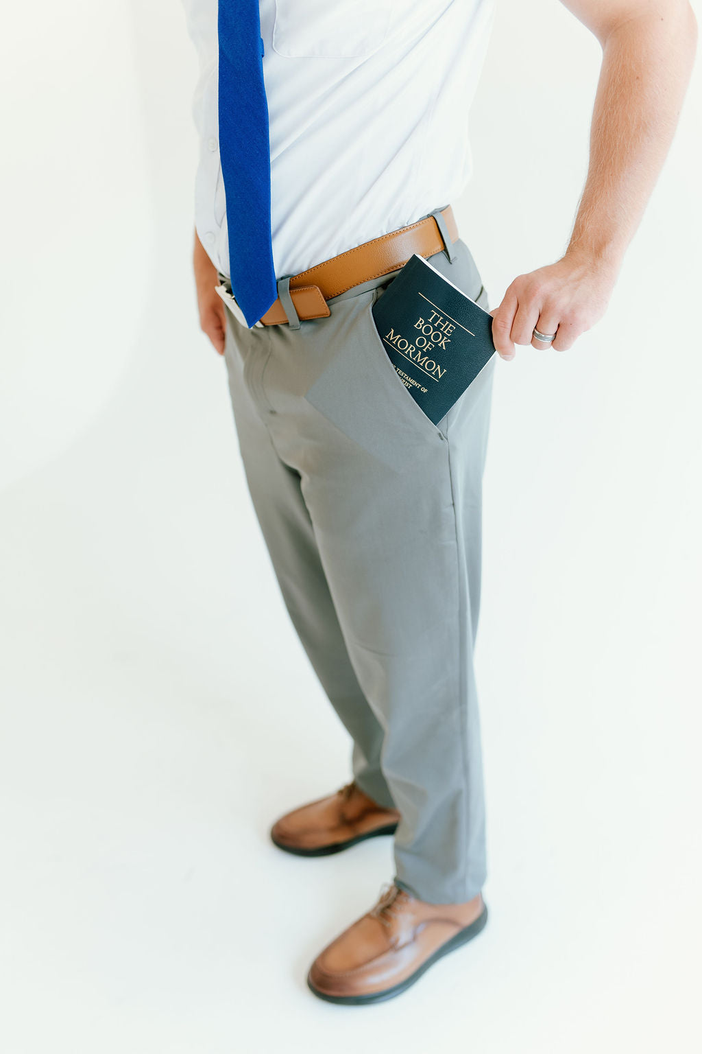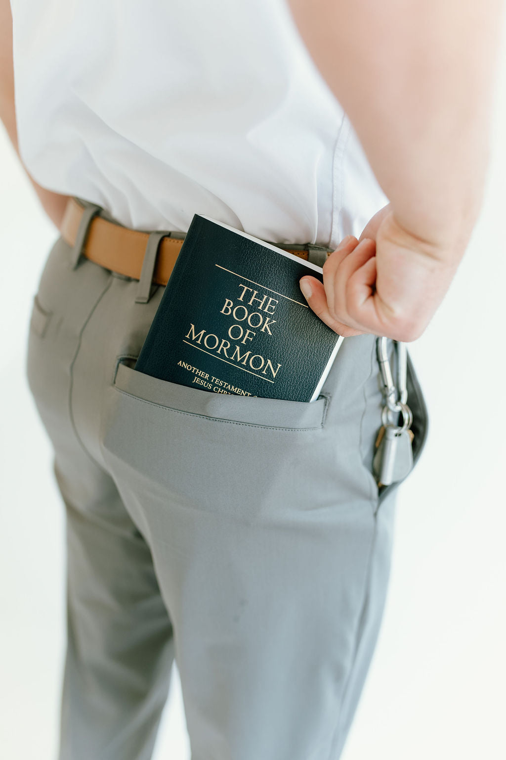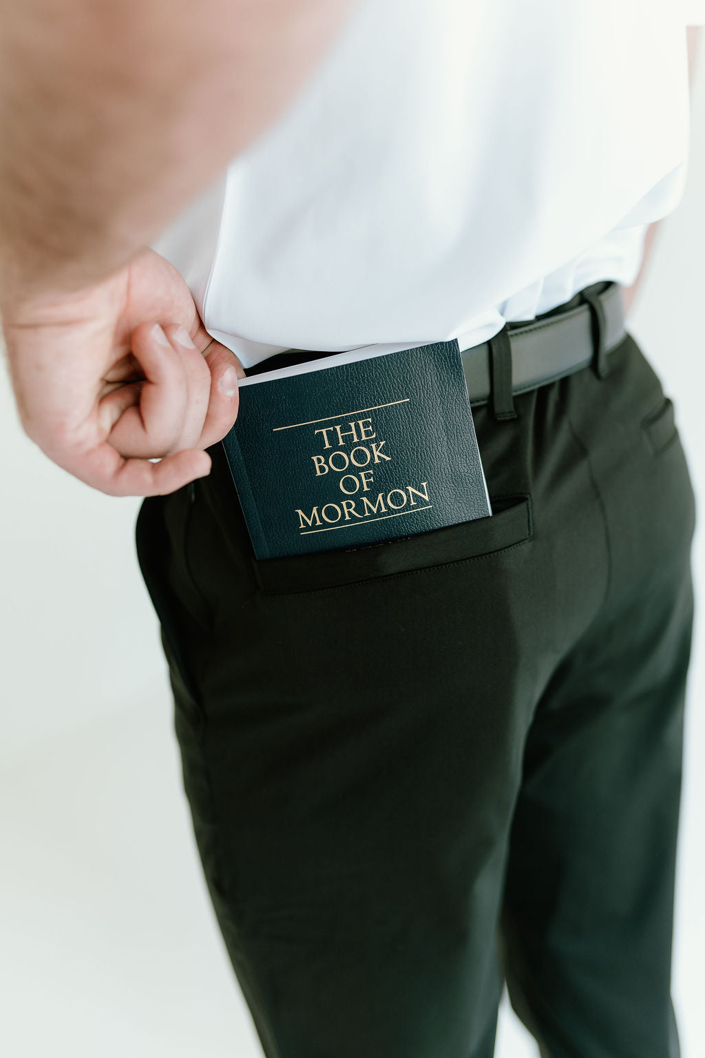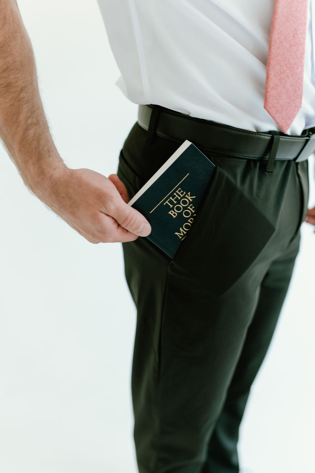 - EXTRA deep, moisture wicking pockets. Did we mention each pocket can fit a whole Book of Mormon? With all that space you can fit your phone, pamphlets, keys, and anything else you might need. You might not even need a backpack! Equipped with a secure zipper pocket on the front left side and a smaller inner pocket on the right side. Needless to say, you’re set in the pocket department.