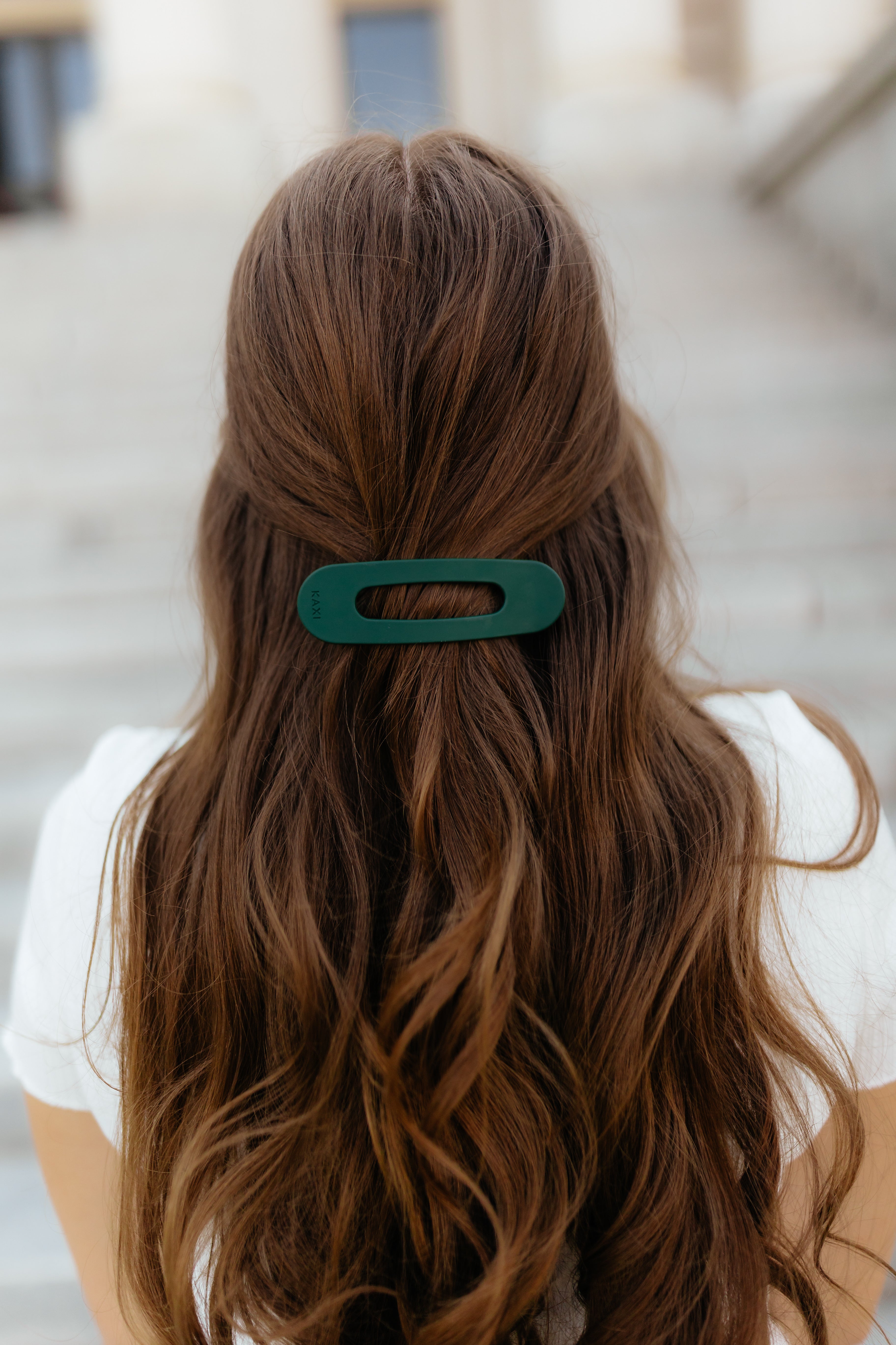 These clips are so nice and stay put really well too! I got the green one and I love the color! These are perfect for putting hair half up and when you're driving it won't hurt your head either