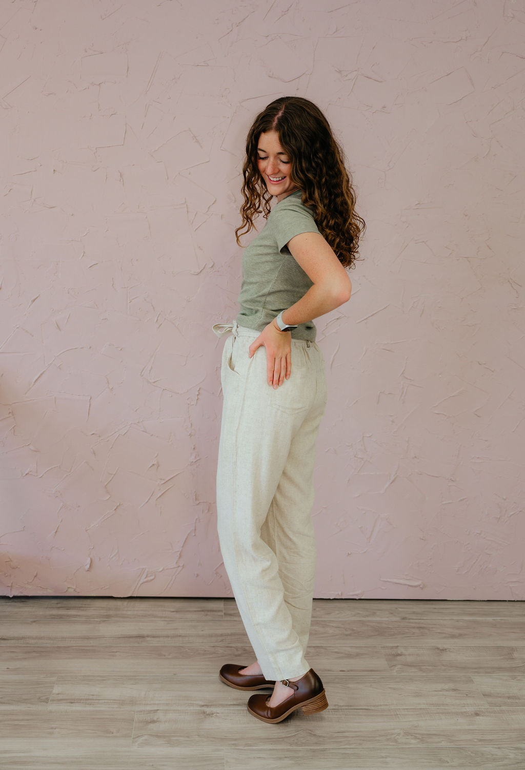 I love these pants! Super breathable linen blend! Most linen pants I get are wide leg but i actually loved the tapered pant that could be styled up or down for a more professional or casual look. Super great for especially hot and humid places! with that just hang dry but i throw mine into the wash!