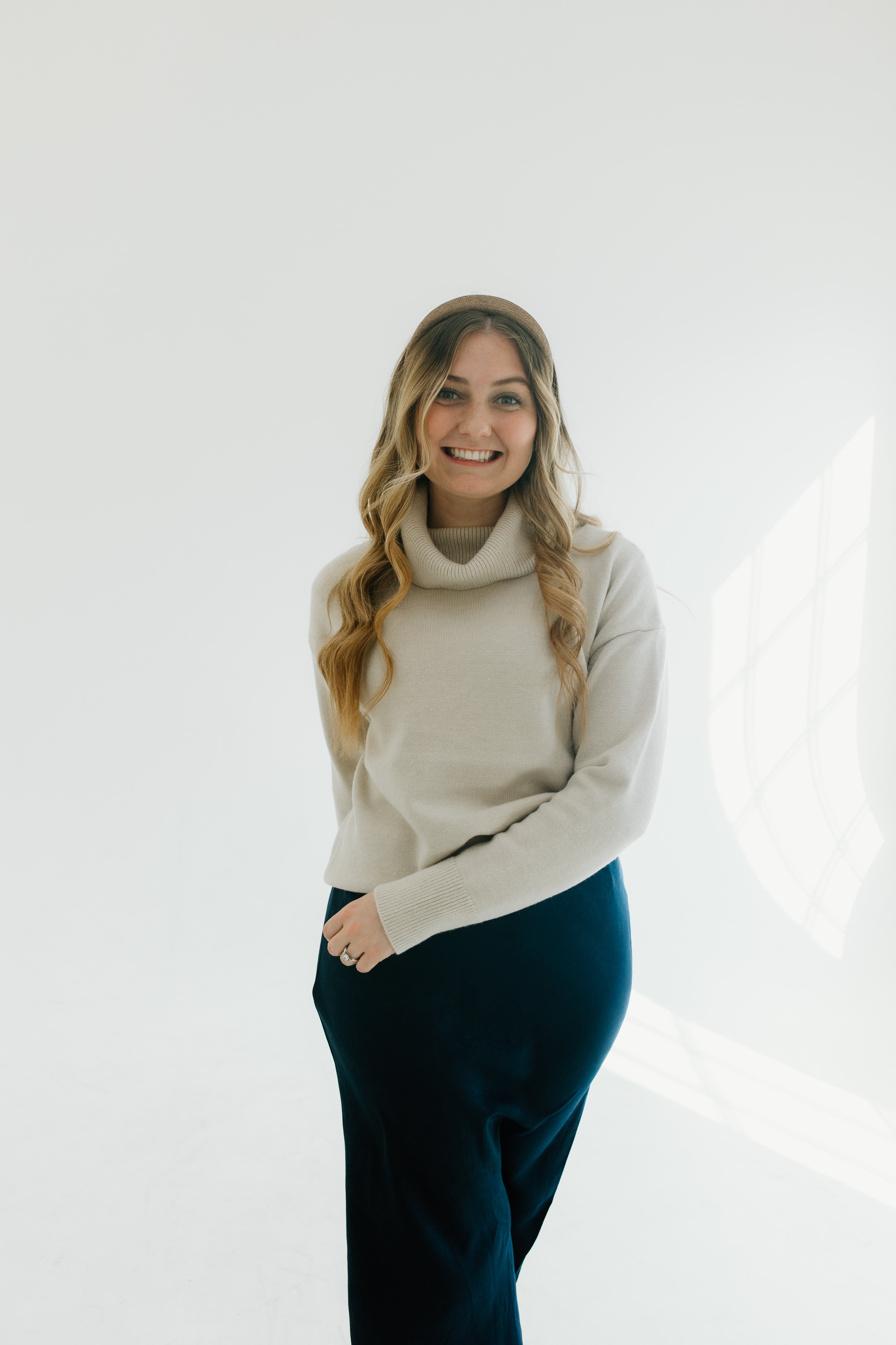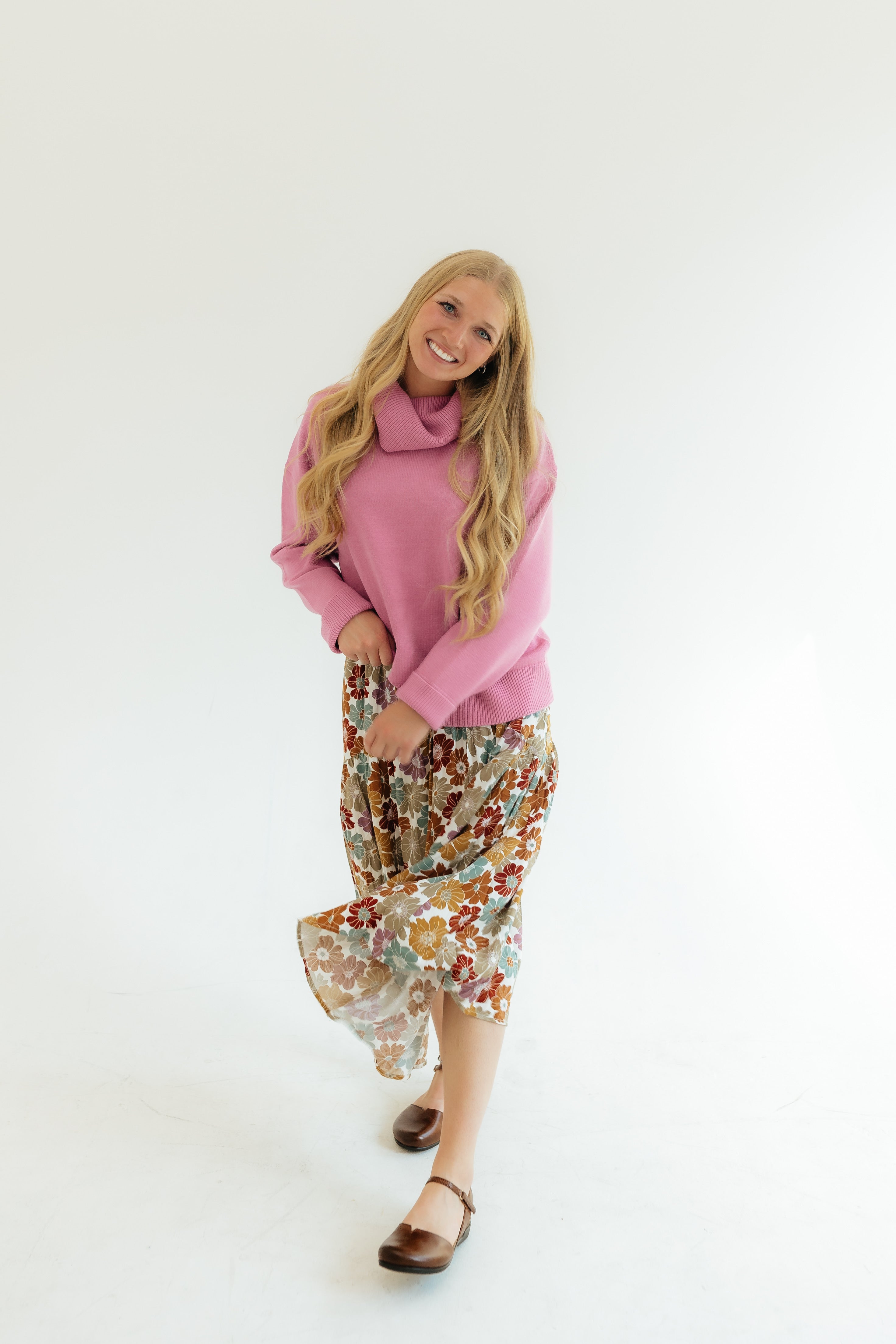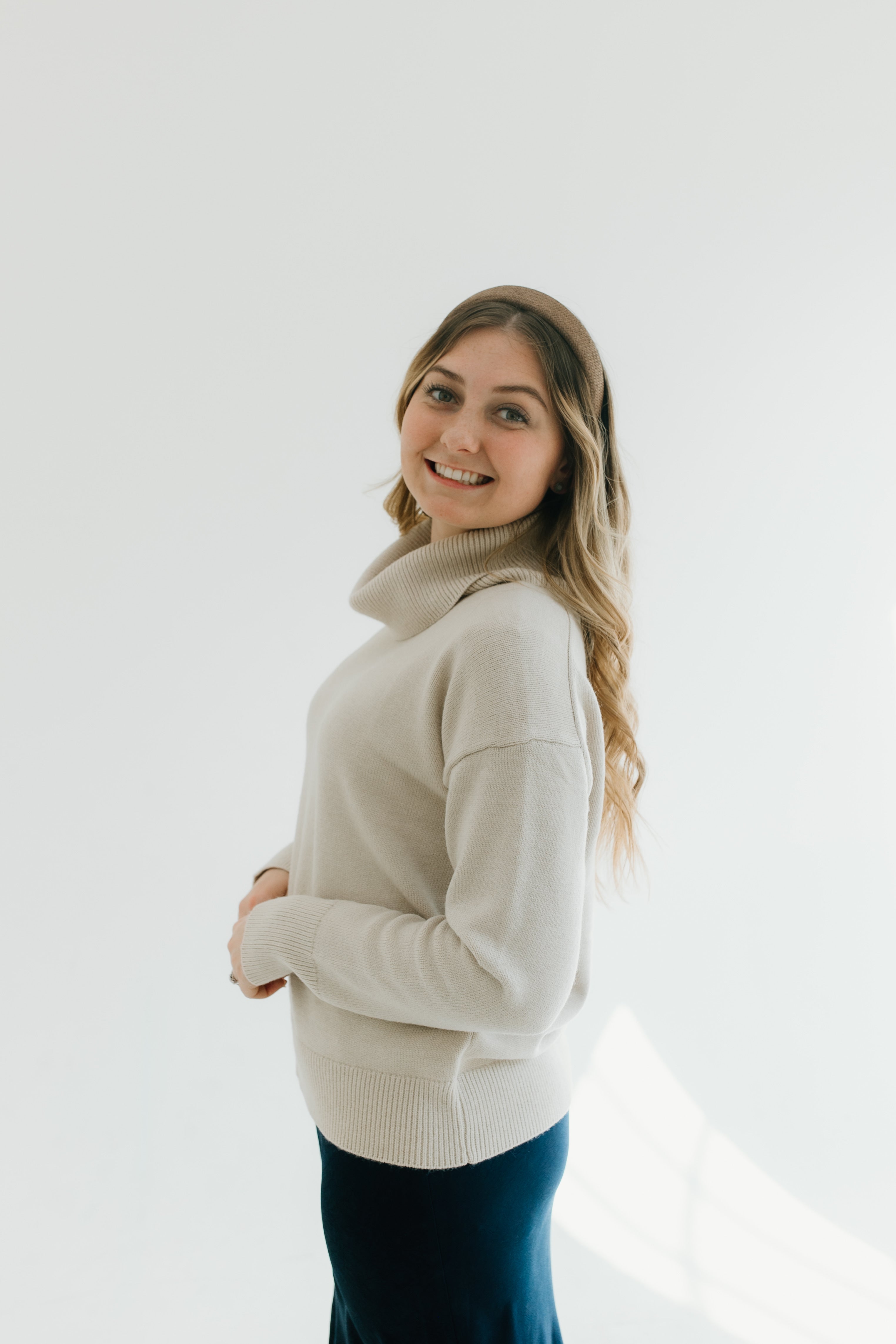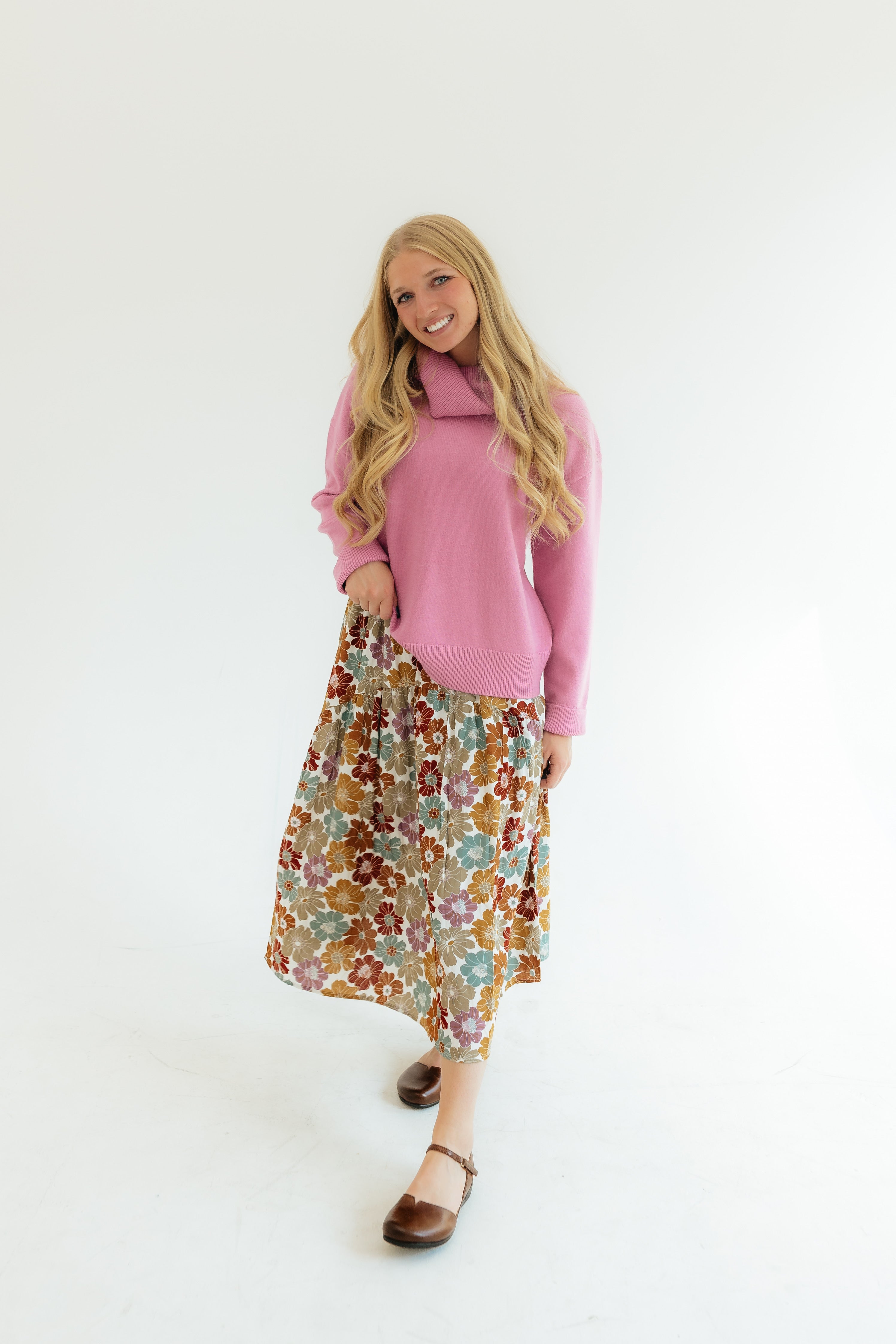The material on this sweater is super soft and is a warmer, durable sweater. The turtleneck is super fun. I normally am a small and I got this one in a large to have it fit a little bit oversized and to throw it over dresses. I got this in cream but I love it, it washes well., and I would buy this in every color. If you’re thinking about buying it, you won’t regret it!