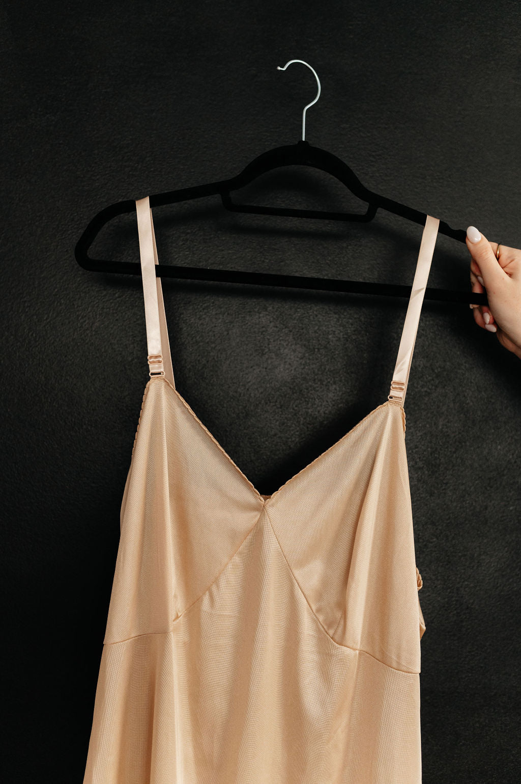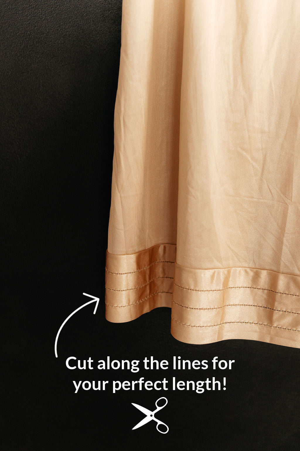 Every lady needs a good slip, and this is a great one. This full body slip has adjustable straps, and is 31 inches long. This slip also has an awesome feature of being altered! The tiers at the bottom of the slip are designed to be cut off for a shorter look if you prefer! Score! Don't miss out on this awesome and cute slip!