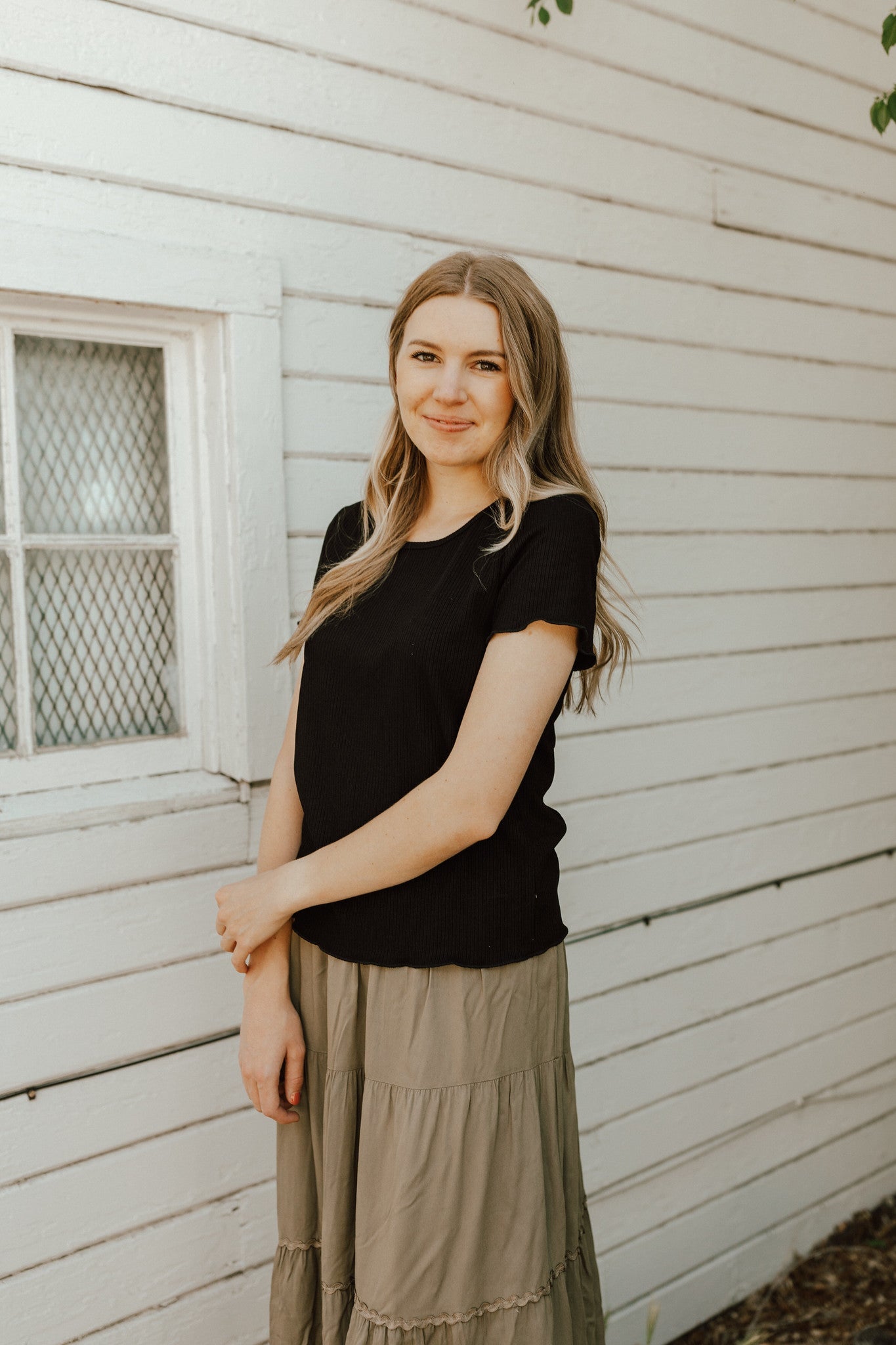 I love that this shirt is light and comfy so you can wear it alone or under a cardigan. It fits well and is comfy. It’s easy to throw in the wash and come out ready to go.